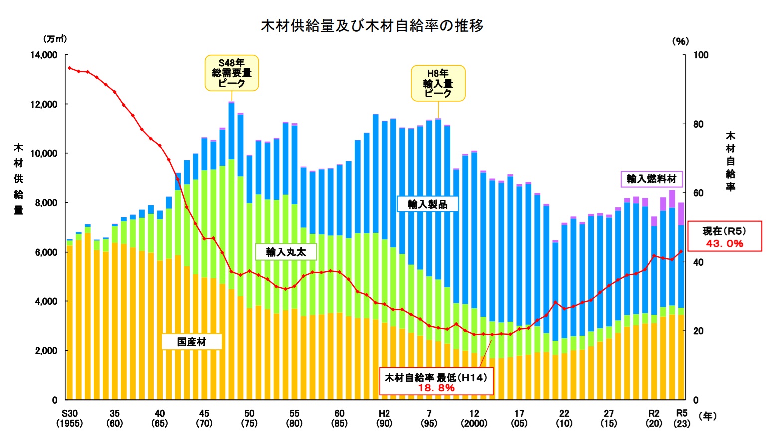 これらにより木材輸入がぐっと増え、時代は一気に“輸入頼み”へ。