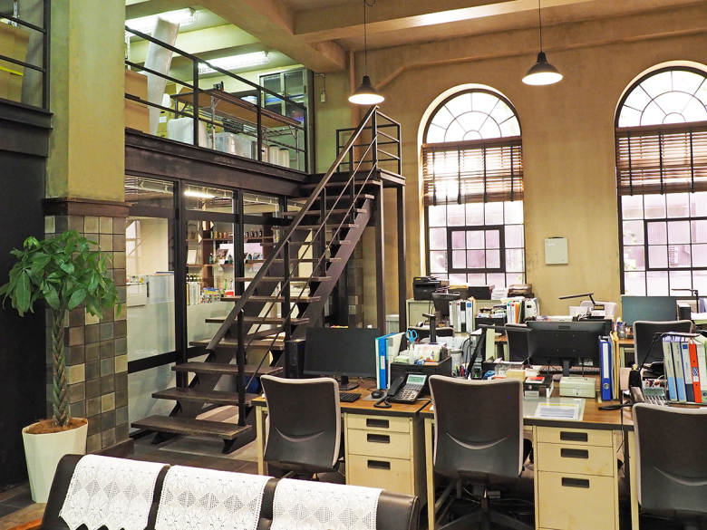 主人公が働く中堅飲料メーカーのオフィスに設置された階段が、二本桁デザイン階段『TWO BEAM(ツービーム)』です。