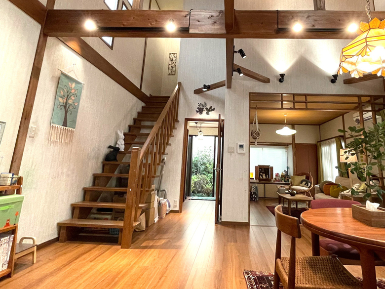主人公の家族が暮らす一軒家に、オープン階段『ヒナダンデザイン』と、