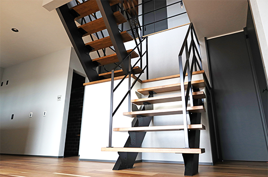 二本の桁でしっかり支える省施工設計のスケルトン階段。