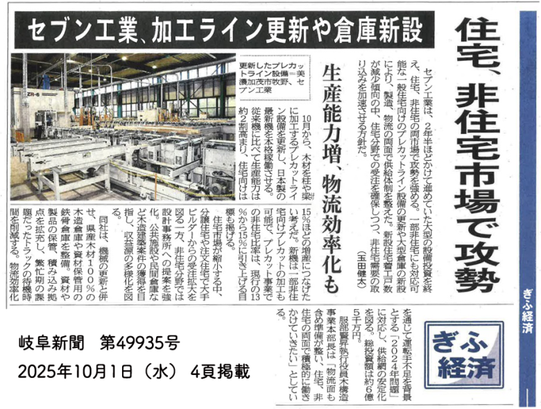 岐阜新聞 2025年10月1日版(第49935号)4頁のぎふ経済面に、当社を取り上げた記事が掲載されました。