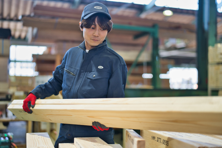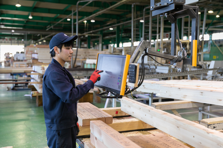 【プレカット】 戸建て住宅、集合住宅、公共施設やレジャー施設などの非住宅の躯体の 材料を加工。 設計されたデーターが工場内の機械に転送され、精密な加工が施されます。 ・加工機へ材料の投入 ・図面をみながら寸法の確認作業 ・ラッピング ・ピッキング |