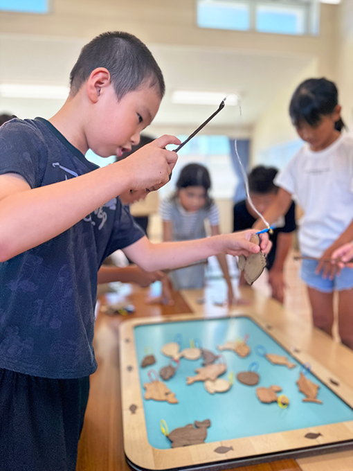 「木のおさかな釣り」は、さまざまな木で作った魚を釣り上げる当社オリジナルのおもちゃで、木の特性や森林の役割を学んでもらうことを目的に、SDGsの取り組みの一環として各種イベントで活用してきたコンテンツです。