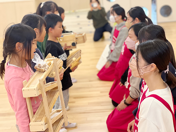 11月29日に行われた贈呈式には、園児や学生のほか、市職員やボランティア団体「みのかもおもちゃ病院」の皆さまが参加し、当社も招待いただきました。端材は安全性に配慮して丁寧に加工され、木琴や絵合わせパズルなど、温かみのあるおもちゃへと生まれ変わっていました。