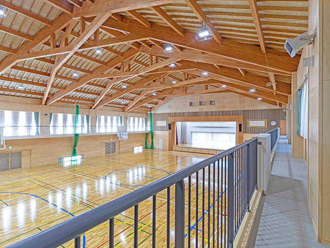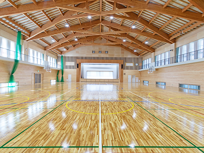 2023年03月/長野県 天龍村総合体育施設 学校教育施設、社会教育施設、災害避難施設のそれぞれの機能を兼ね備えた複合型施設。 天龍村の木材をふんだんに使用しており、小屋組はダイナミックな大梁の造形美を見ることができます。 延床面積 1,347.81㎡ 建物概要 RC造一部木造・2階建て PREV 施工事例の一覧へ戻る NEXT
