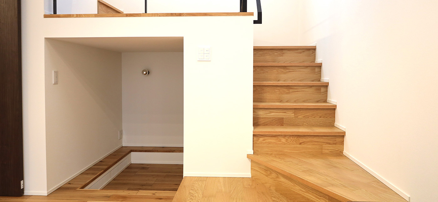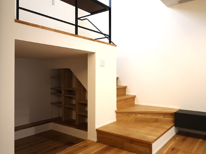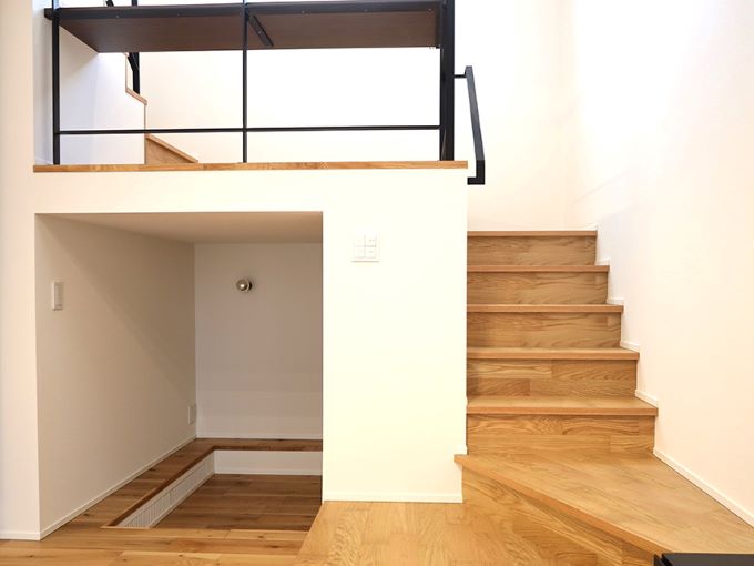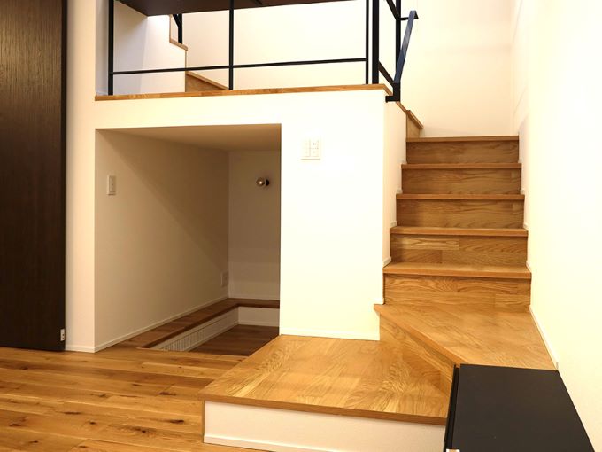 階段まわりの空間を活かし、ヌックという“こもれる居場所”を取り入れた住まいの事例です。