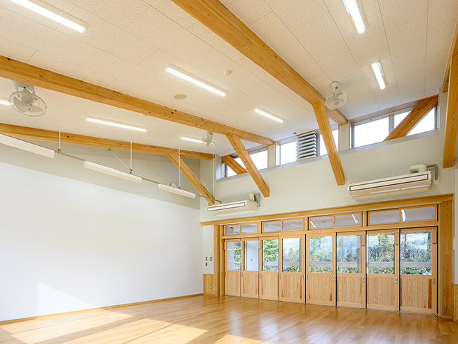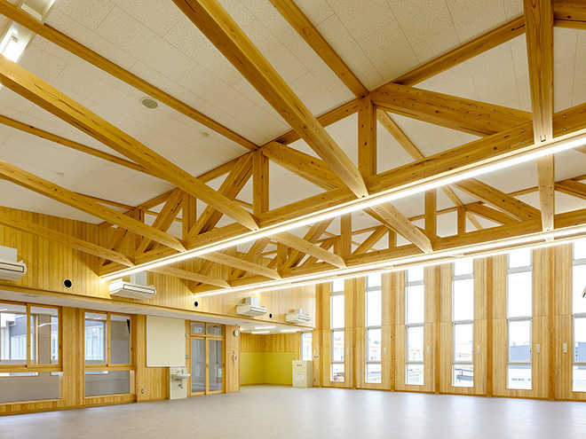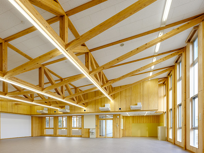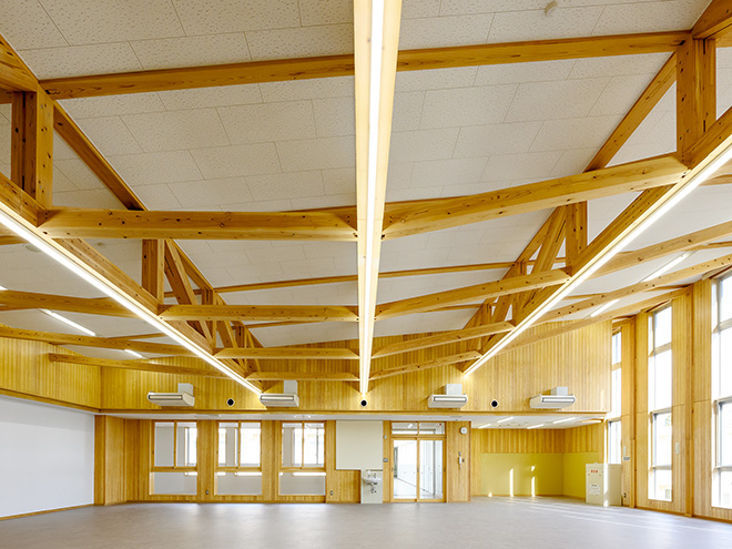 地域材を活用することで、環境に配慮するとともに、木の温かみを感じられる校舎となっています。