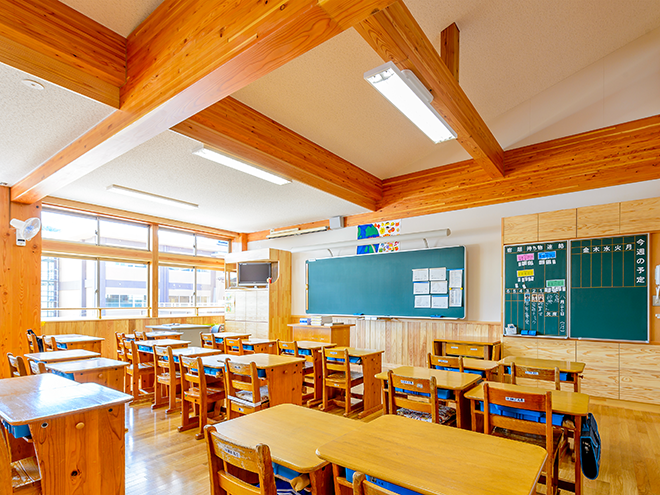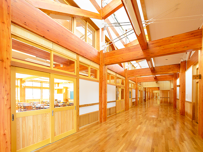 飛騨の地にふさわしい、木の特色が生きる校舎